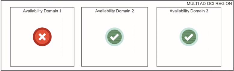 So as you can see in this image above, a particular region has three availability domains. One available domain has some kind of an outage and is not available. But the other two availability domains are still up and running.