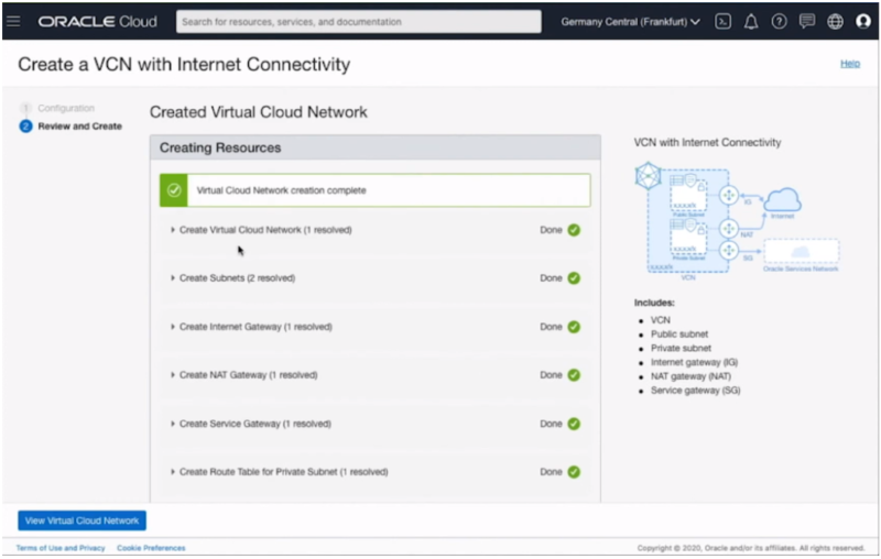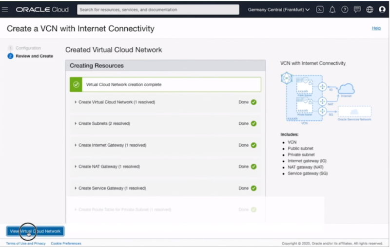 Now VCN is created and you can view it by clicking on View Virtual Cloud Network