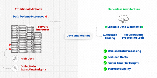 A more effective method of managing and processing data is to approach data engineering through cloud or serverless architecture. Using cloud services, enterprises may offload the burden of infrastructure administration and expand resources to meet changing demands.