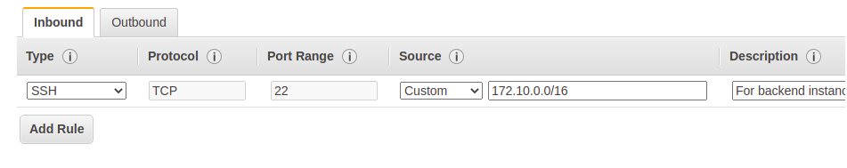 For SSH protocol, Source “anywhere” (0.0.0.0/0 ) is fatal. What we should do is, for backend instances, keep the destination as VPC CIDR range only which in my case is 172.10.0.0/16 (Fig. 4). For frontend instances or instances in a public subnet, we can add our public IP to the security group Source. We can select our current IP with my IP Option (Fig. 5). This step will reduce our instance vulnerability considerably as SSH is a single point through which one can gain complete access.