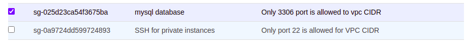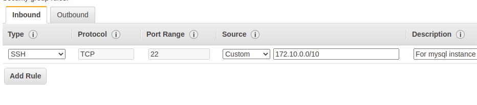 Instead, we can create two separate security groups. One for SSH and another for MYSQL