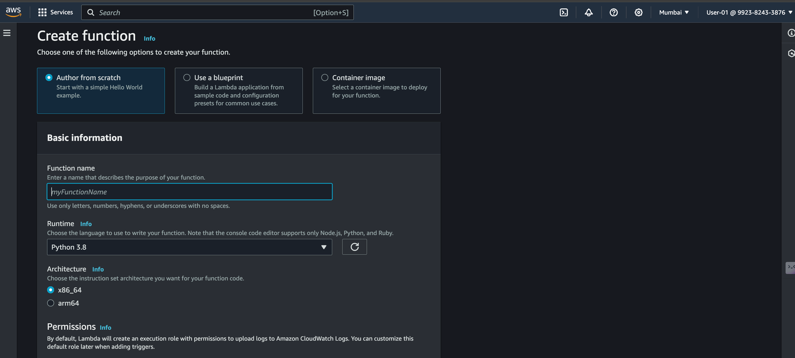 - Create a new Lambda function with a suitable name, runtime (Python 3.8+), and role with the necessary permissions.
