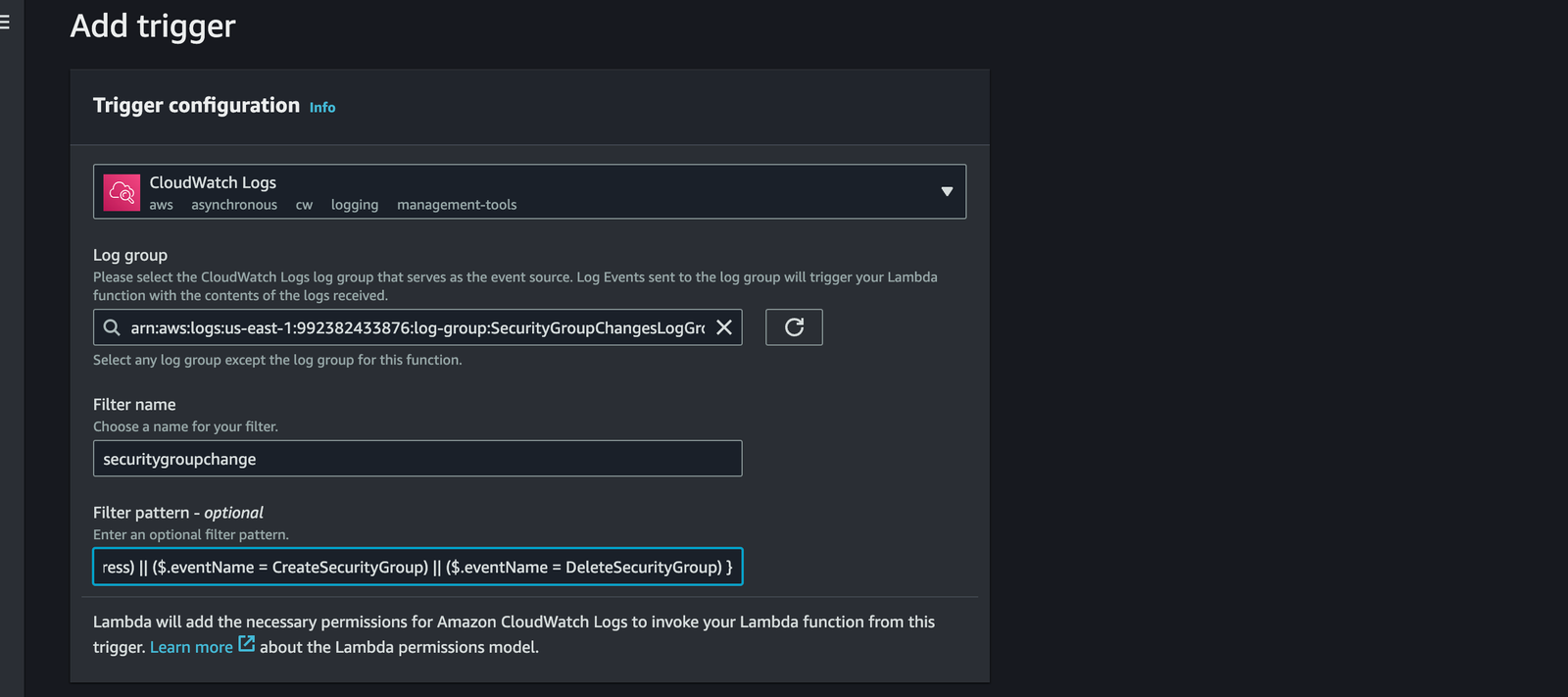 Step 5: Add CloudWatch Logs Trigger to Lambda