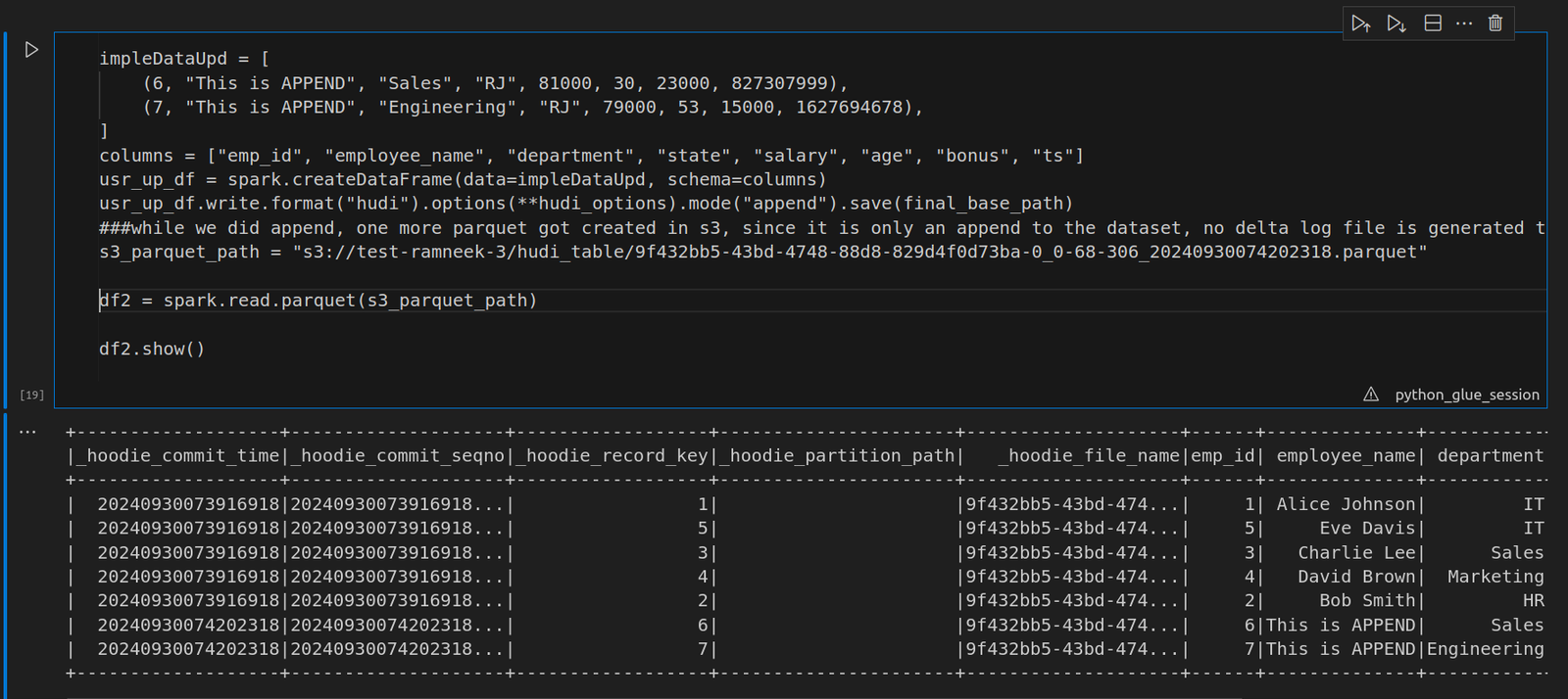 First, ensure you have all the necessary libraries in place. In this example, we’ll be using PySpark along with Hudi on AWS Glue notebook to manage data and run our queries. Make sure to import the relevant libraries and establish a Spark and Glue context before proceeding