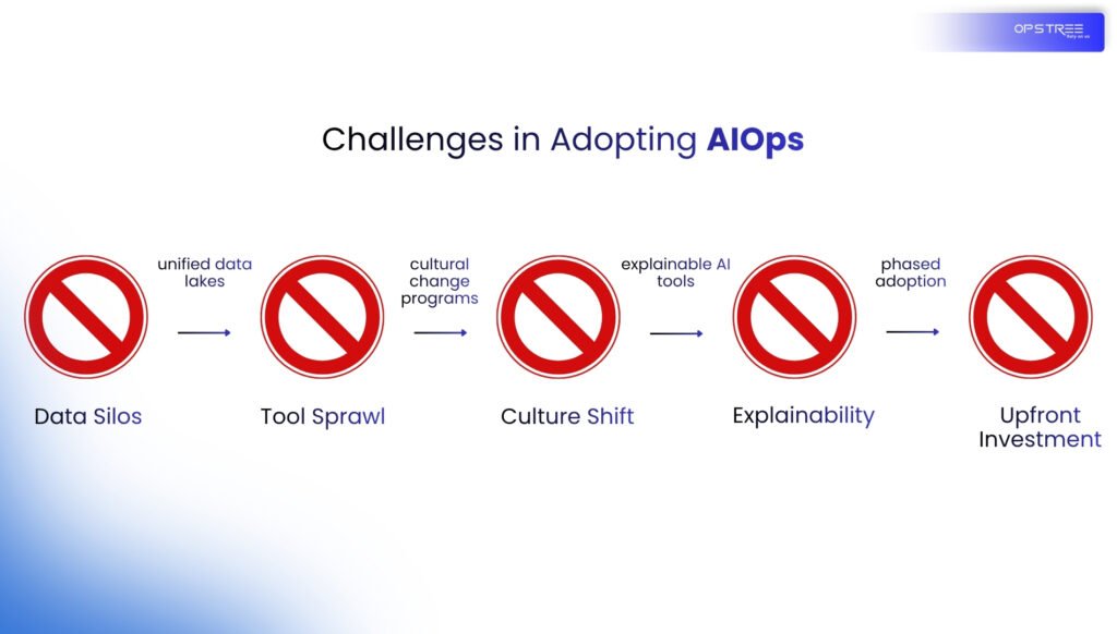 The ROI is strong, but initial setup (data integration, training models, building automation) requires both budget and executive sponsorship. AWS’s pay-as-you-go AIOps eliminates most upfront costs.
