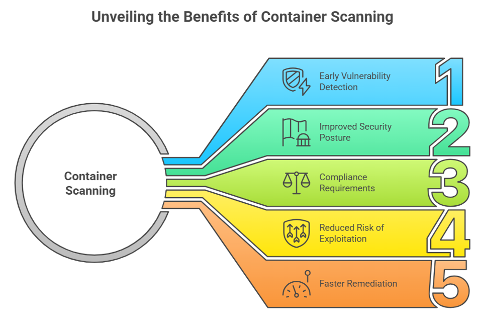 - Early Vulnerability Detection: Container scanning identifies vulnerabilities early in the development lifecycle, allowing developers to fix them before they reach production. This reduces the cost and effort associated with remediation.