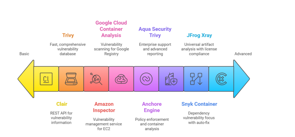 Several container scanning tools are available, each with its own strengths and weaknesses. Here’s a comparison of some popular options: