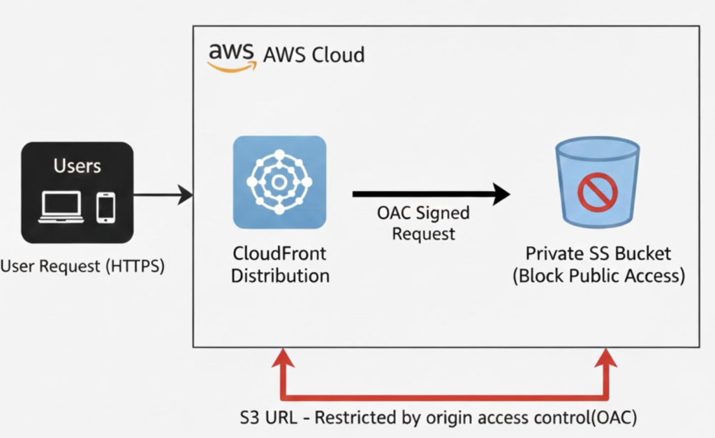 CloudFront sends a signed request → S3 verifies the signature → grants access only if the request came from the exact distribution we configured.