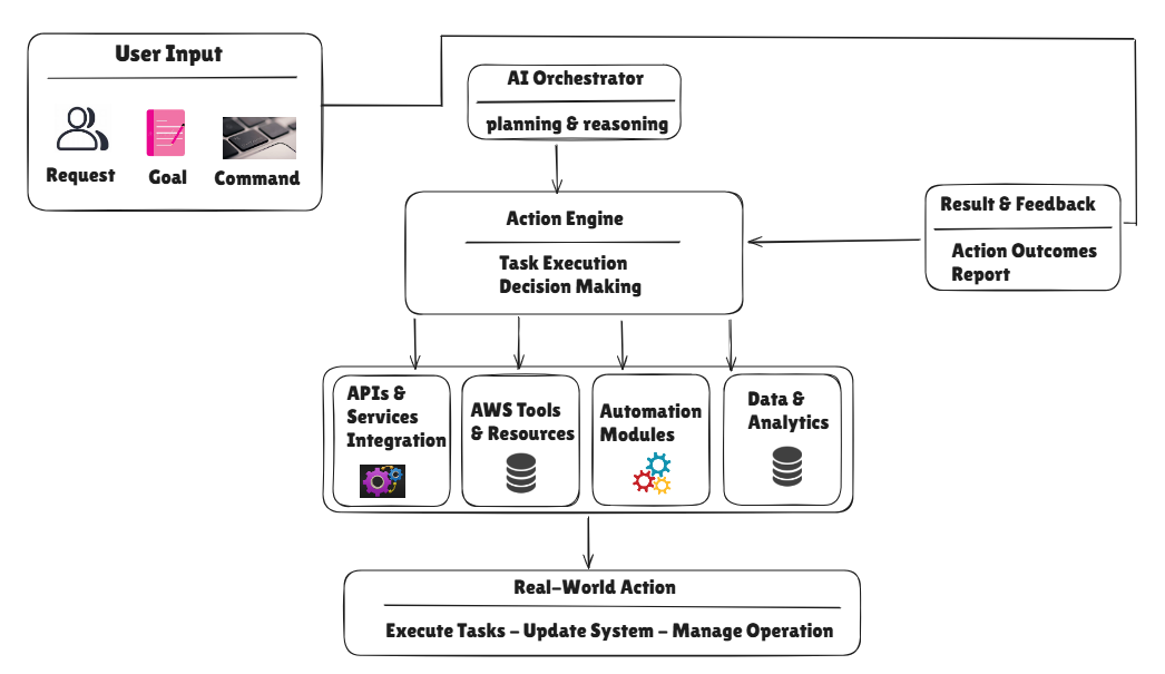 - Integrations Layer – Connects with AWS services, APIs, automation tools, and enterprise systems.