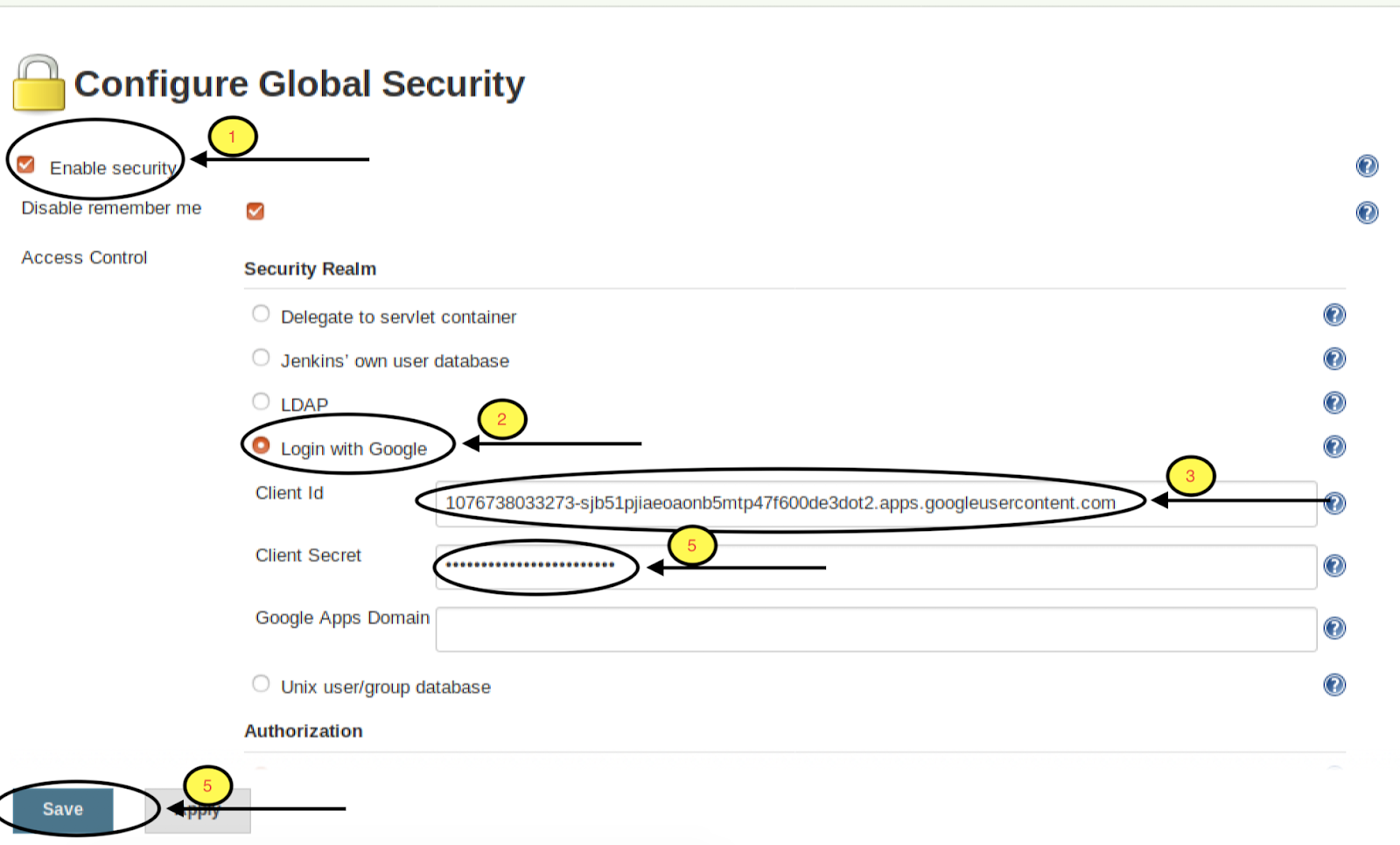 Check the Enable security → Login with Google and Paste the Client ID and Client secret generated in Create Credential Step and Save.
