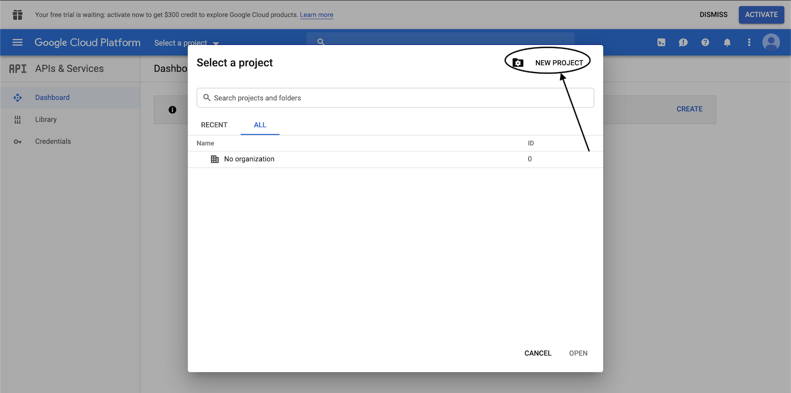 After sign in into google developer console, we will redirect to Google developer console UI screen.