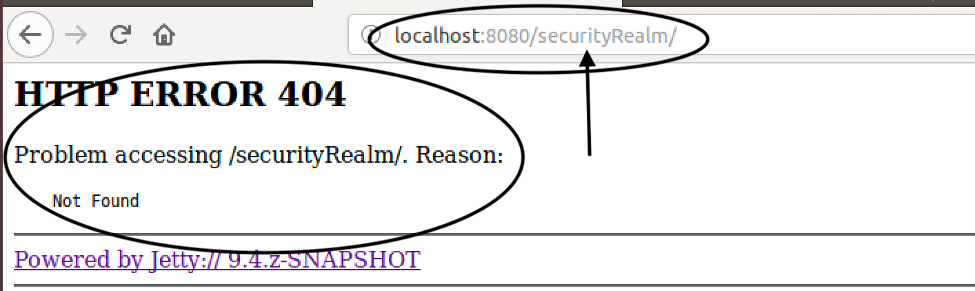 Don’t worry, you have to just remove “securityRealm/” or enter again “localhost:8080”.