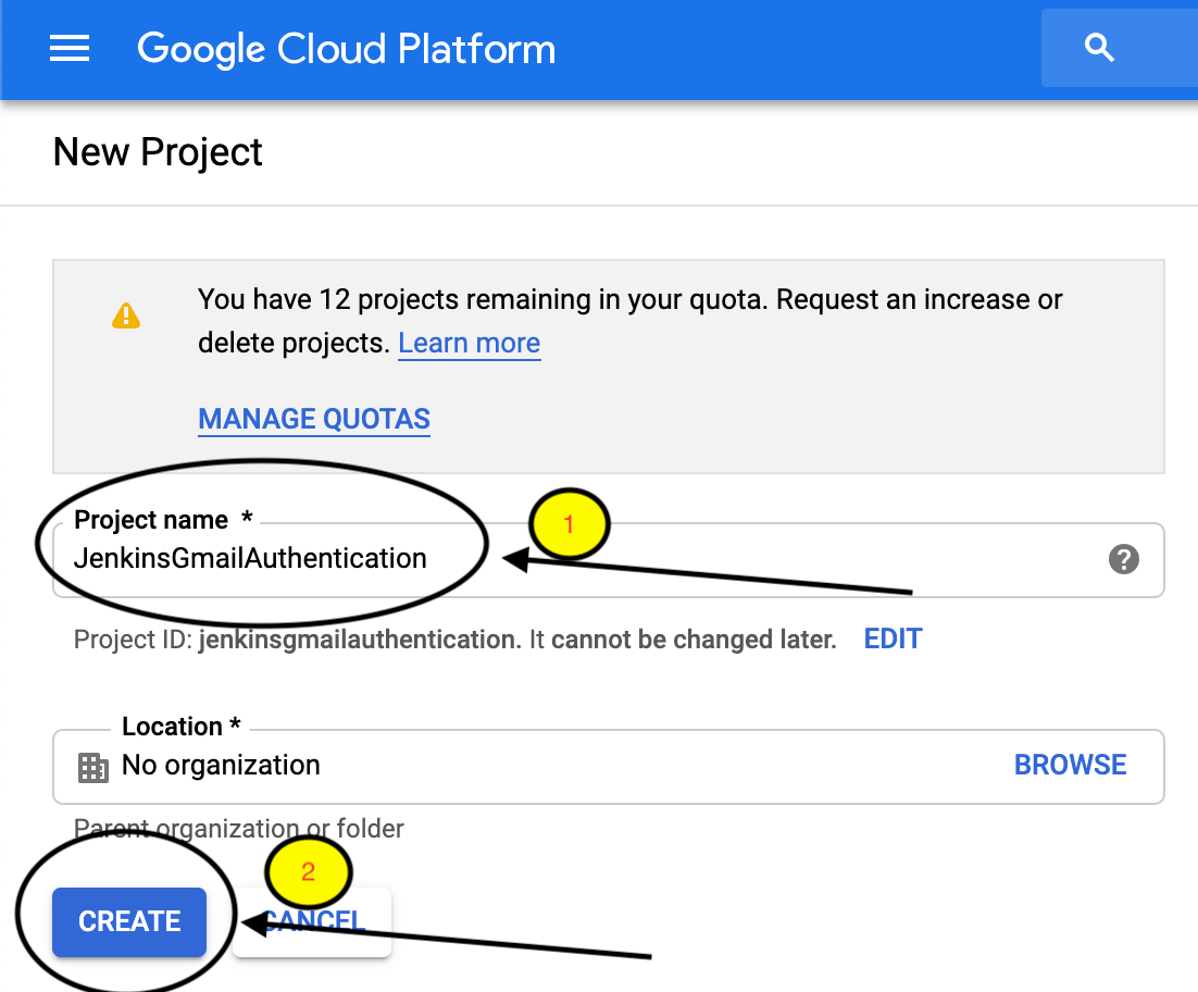 Give Project Name, here I will use “JenkinsGmailAuthentication” and create a project. Creating a project takes 1 or 2 minutes.