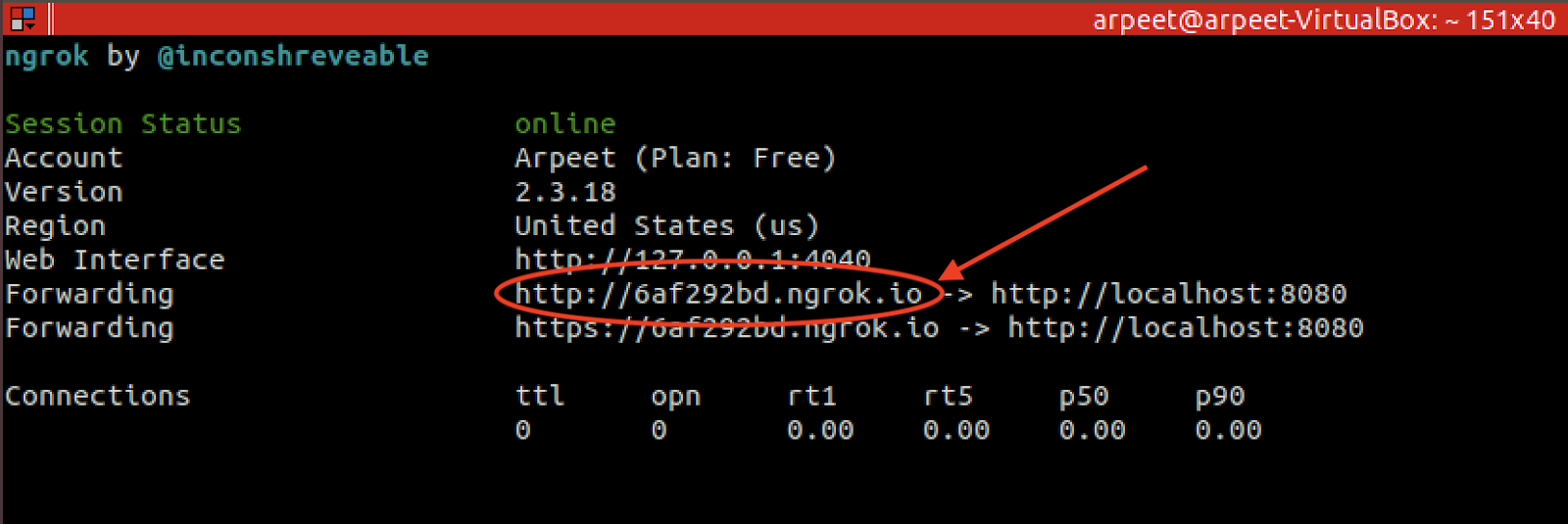 Note: Remove ” . / ” sign because we moved ngrok file to /usr/local/bin