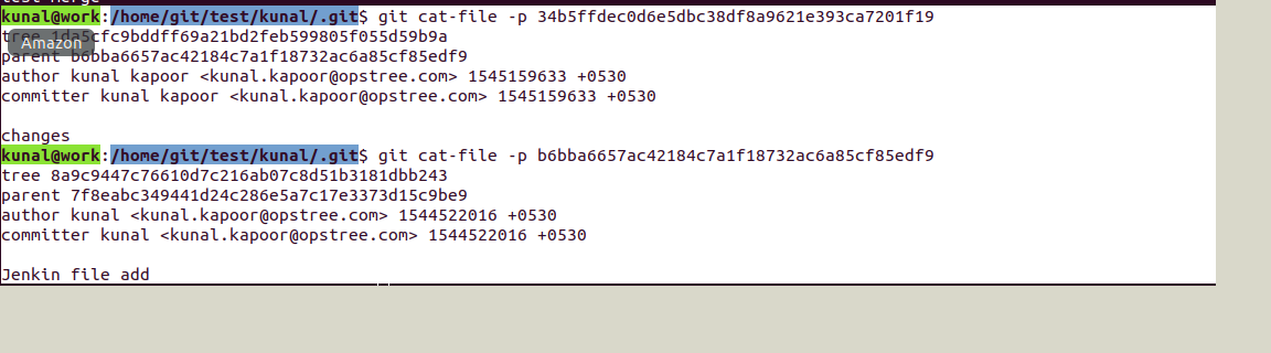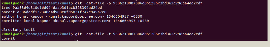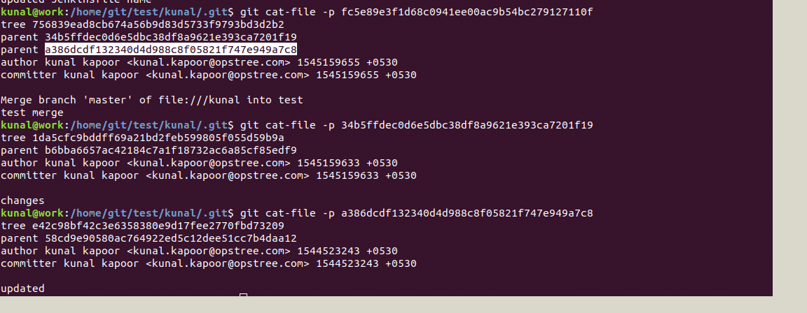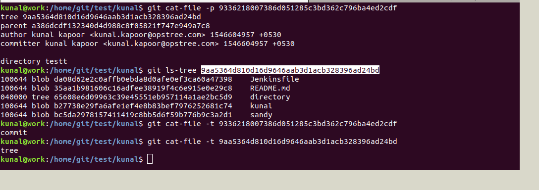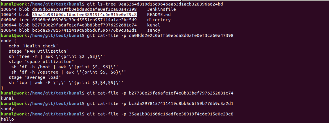 Below are the details that we can fetch from above SHA-1 with the help of git cat-file :