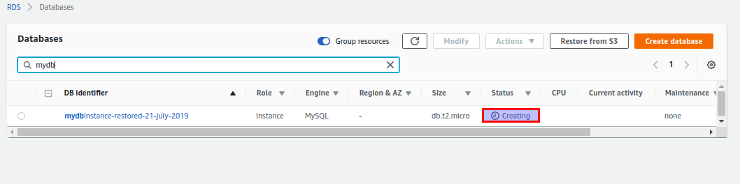 Step 10: You can see the db creation in process. Finally, you have restored the DB to a different AWS account !!