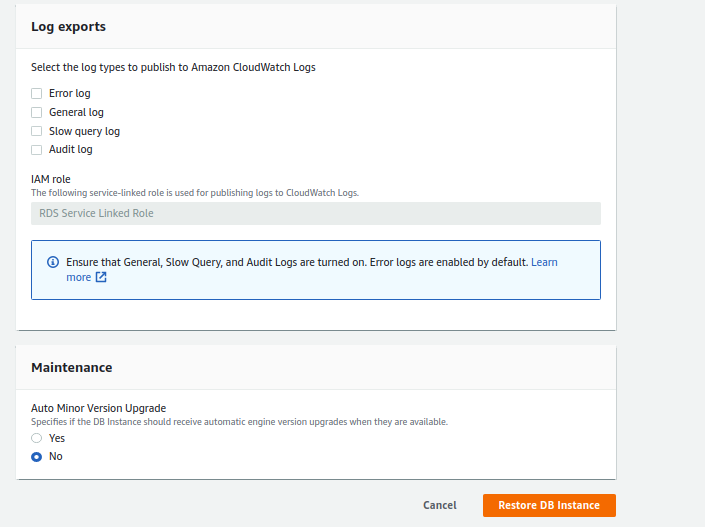 Step 9: Finally click on “Restore DB instance” and voila !!, you are done.